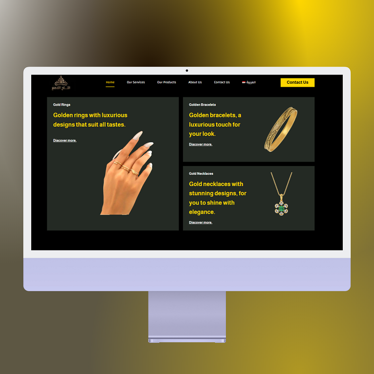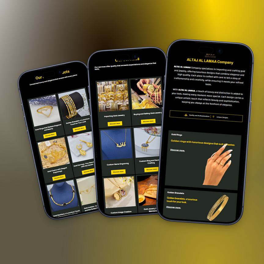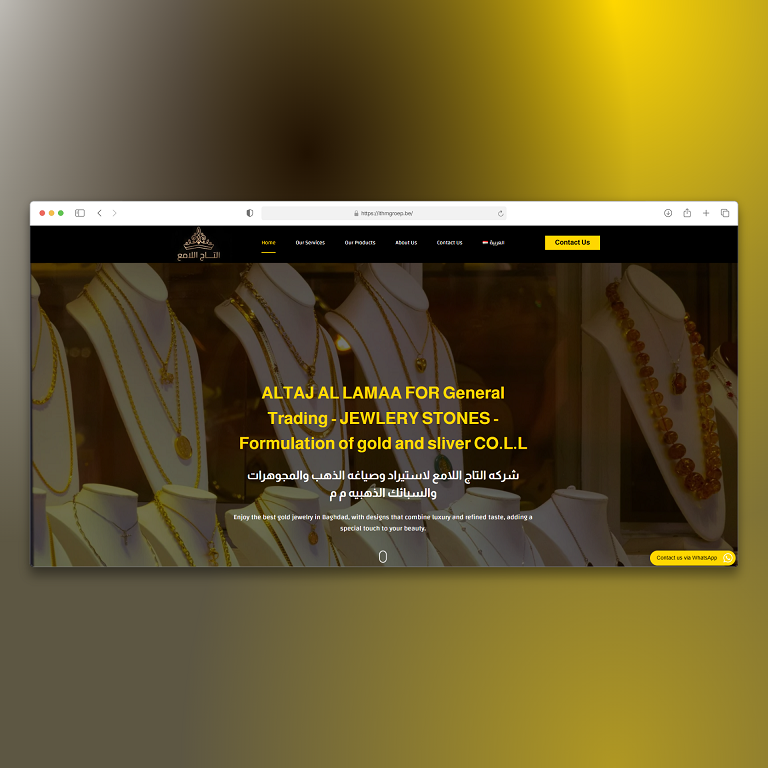 A luxurious, bilingual website designed for ALTAJ AL LAMAA, a leading jewelry and gold formulation company in Baghdad, Iraq. The site elegantly captures the brand’s heritage and craftsmanship — bringing their artistry into the digital age.