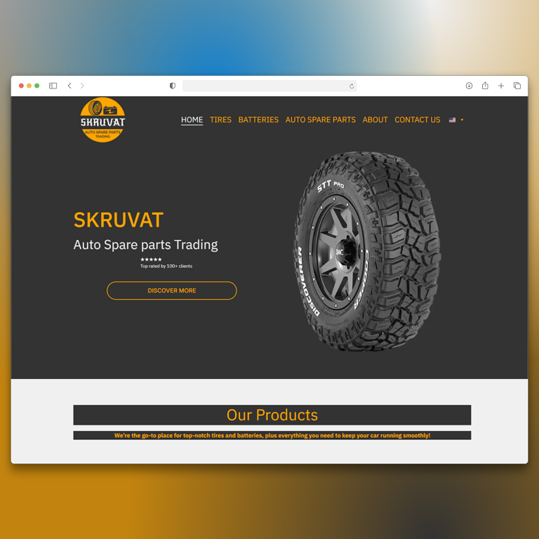 SKRUVAT, a trusted name in the automotive industry, needed a professional website to match their reputation for reliability and quality. With a strong product portfolio covering tires, batteries, and spare parts, their goal was to create a digital platform that communicates expertise, builds confidence with international clients, and supports long-term B2B relationships.